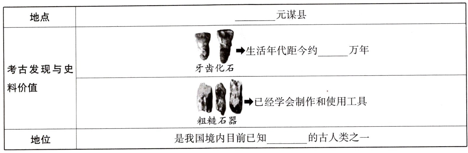 问题1 我国是世界上发现古人类化石和旧石器时代遗址最多的国家之一。阅读教材内容,完成下列要求。