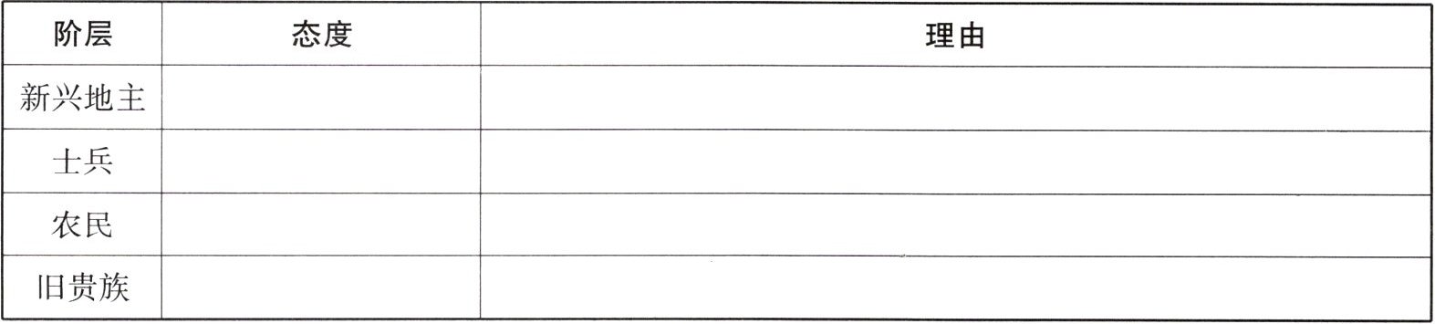 (1)请同学们分别代表四个不同的阶层,谈一谈对商鞅变法持什么态度,并阐明理由。