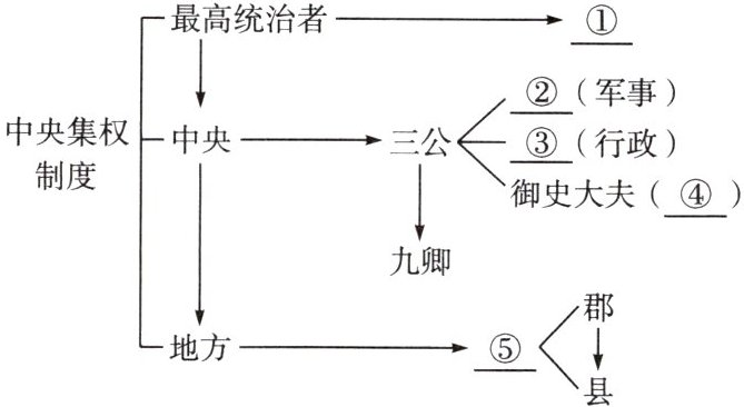 1.齐 2.221 ①皇帝 ②太尉 ③丞相 ④监察 ⑤郡县制