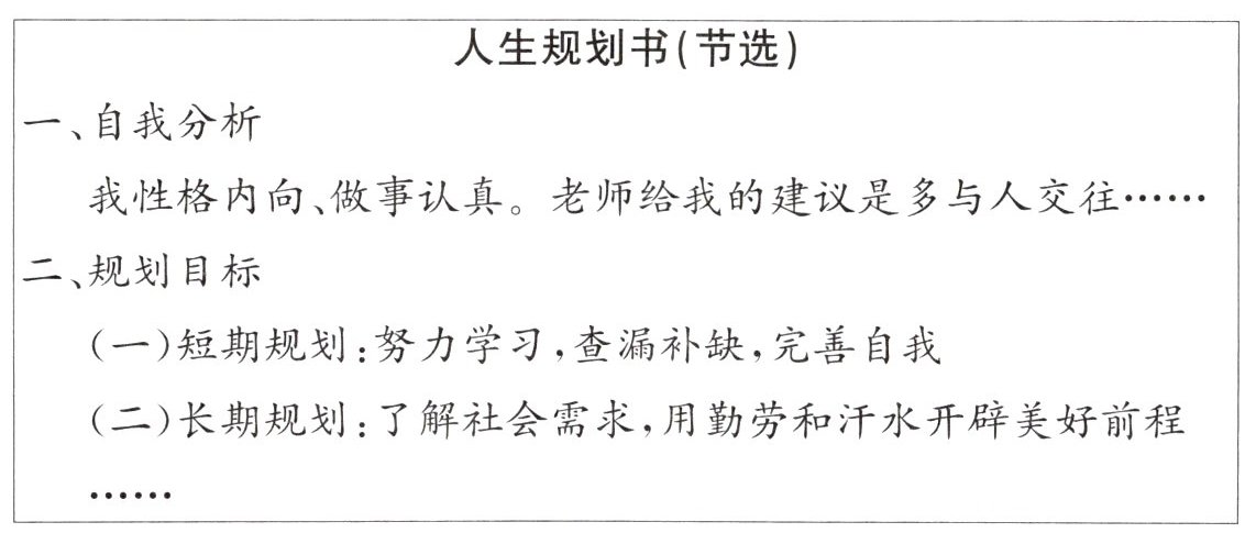 (2)材料中画线句子给我们树立人生目标带来什么启示?