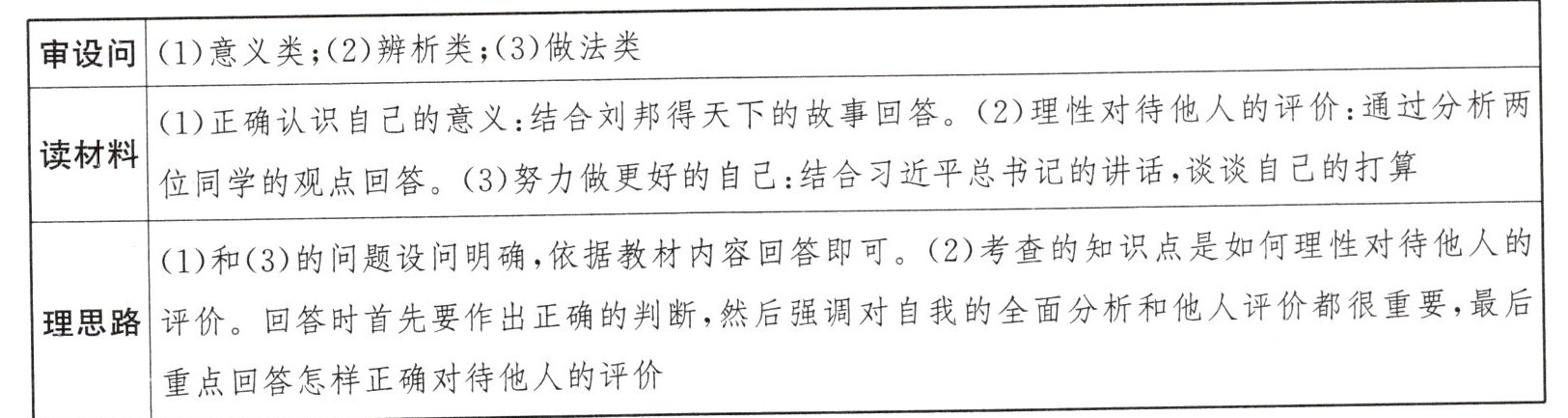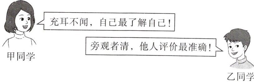 (2)甲、乙两位同学的观点都是片面的,我不赞同。理由:①我们既要重视对自我的全面分析,又要正确对待他人的评价。②他人的评价是我们认识自己的一面镜子,有助于我们形成对自己更为客观、完整、清晰的认识。③正确对待他人的评价是走向成熟的表现。④我们要客观冷静地对待他人的评价,既不盲从也不轻视。