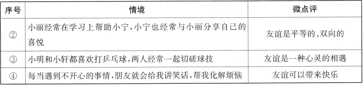 )。①在真正的友谊中,我们能够享受快乐和温暖 ②朋友见证了我们一起走过的成长历程 ③友谊离不开物质条件的支撑 ④友谊让我们更深刻地体悟人生的美好