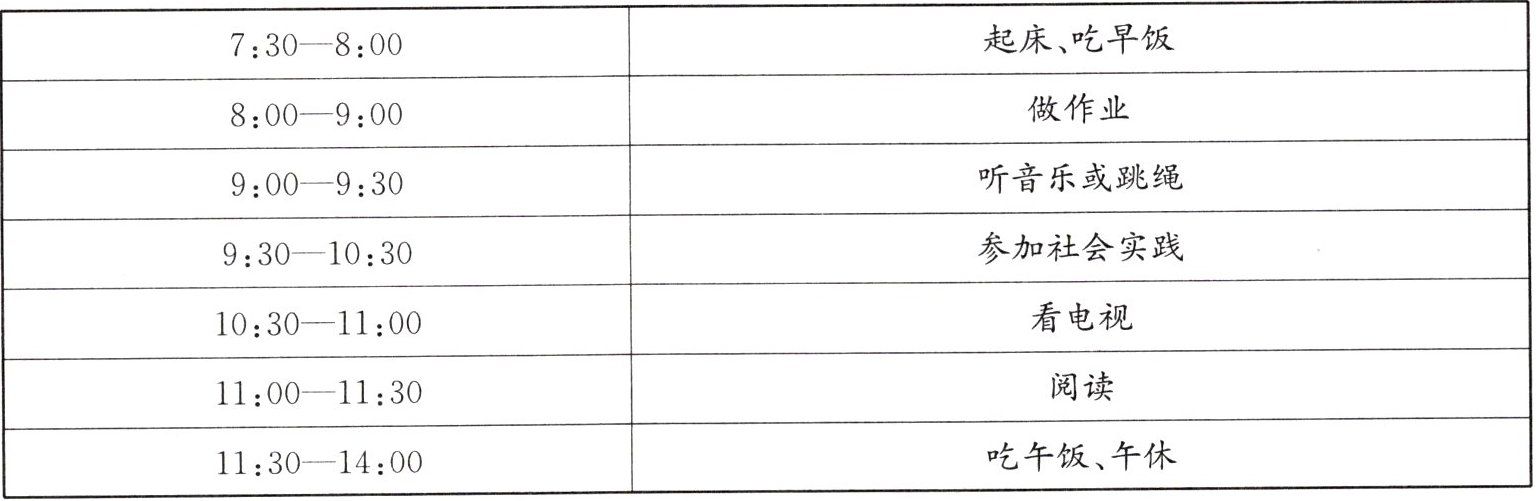 (1)示例 合理。这位同学的作息时间表劳逸结合、切实可行。