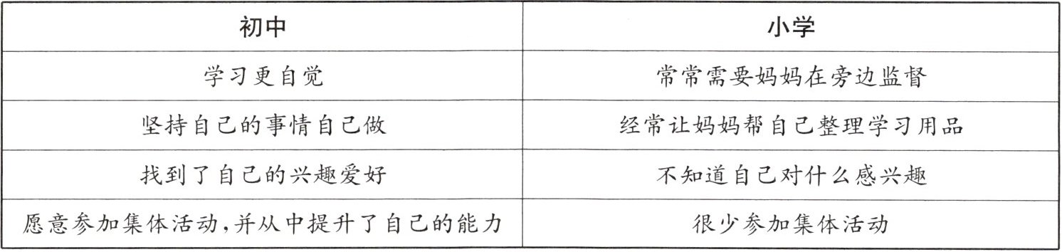 下面是小明同学对初中时的自己和小学时的自己的比较,据此回答5、6题。