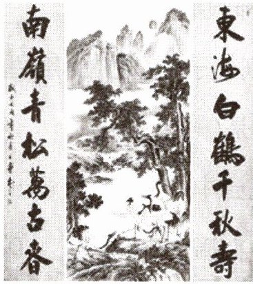 运用对偶的修辞手法;“东海”对“南岭”,“白鹤”对“青松”,“千秋寿”对“万古春”,对仗工整,音韵和谐,表达了人们对健康长寿的期盼和祝愿。