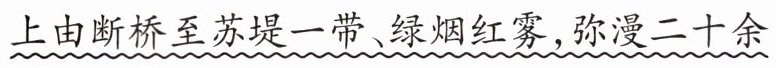 B. “弥漫二十余里”中的“二十”,表现了此区域绿柳如烟、红花似雾美景的范围之广,写出了西湖春景的美妙。