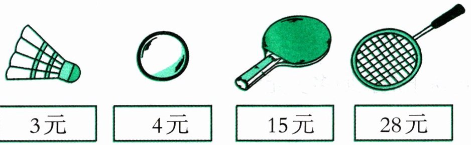解析: 题目考查利用乘法和加法解决实际问题。先算出$4$个羽毛球的价钱,再加上一个乒乓球拍的价钱,最后与$30$元比较大小。