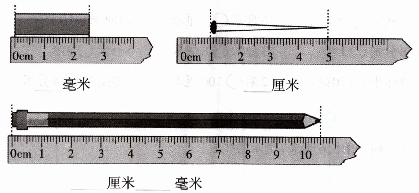 1. 量出下面图形中每条边的长度(用毫米作单位)。