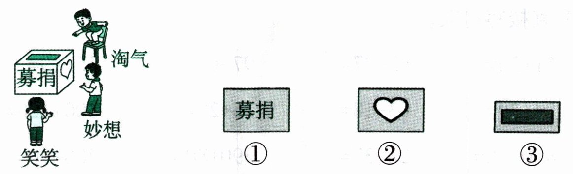 笑笑站在募捐箱的正面,所以她看到的是募捐箱的正面,即有“募捐”字样的那一面。