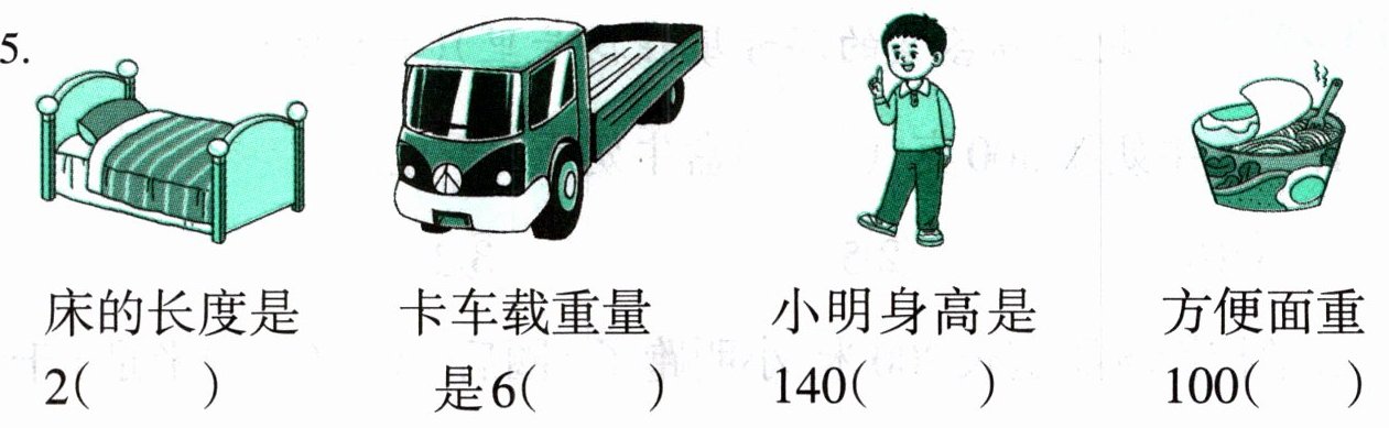 4. 题目考查单位换算和比较。1吨等于1000千克,因此1吨的铁和1000千克的棉花质量是相等的,判断为错误。