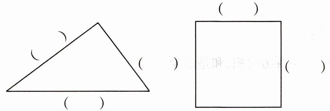 解析:本题主要考查对三角形和正方形边长的测量。需要使用尺子等测量工具,准确测量出图形各边的长度,单位为毫米。
