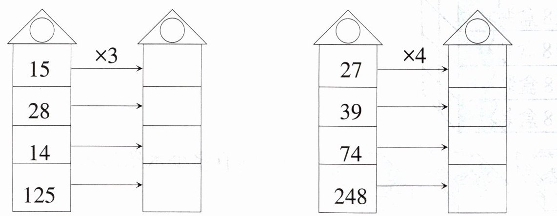 解析:题目考查多位数乘一位数的口算。计算时,将多位数拆分成整十数、整百数等,再分别与一位数相乘,最后将结果相加。