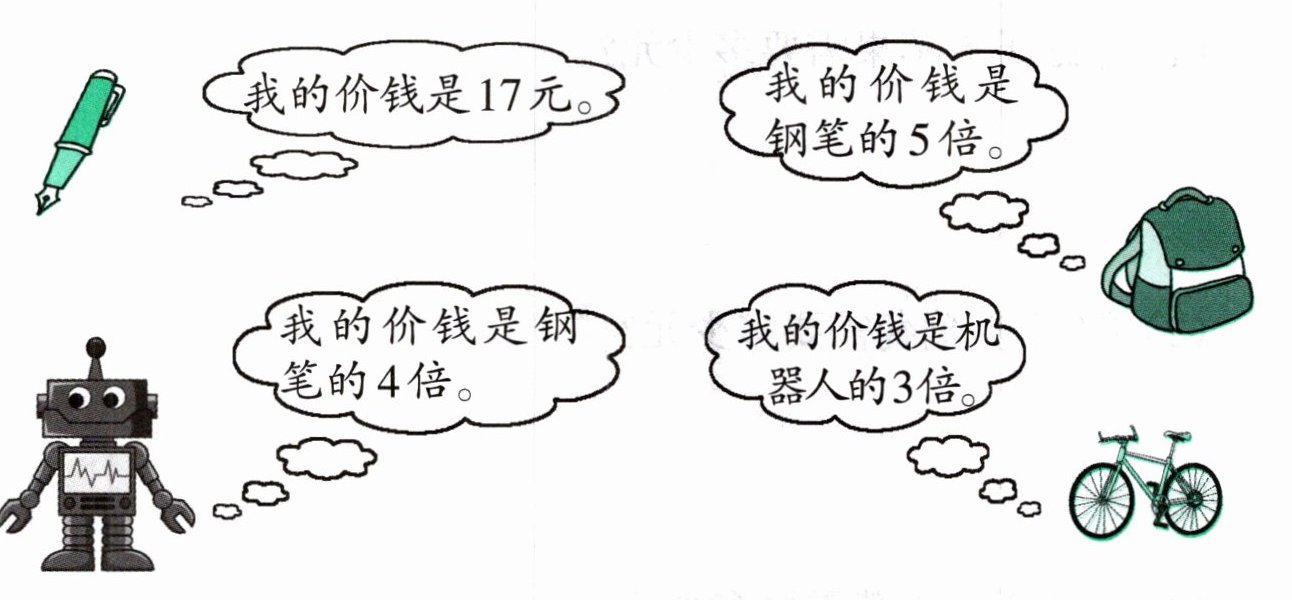 解:已知钢笔的价钱是$17$元,机器人的价钱是钢笔的$4$倍。