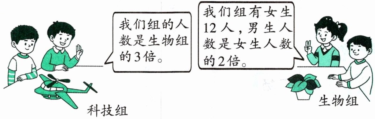 科技组:我们组的人数是生物组的3倍。