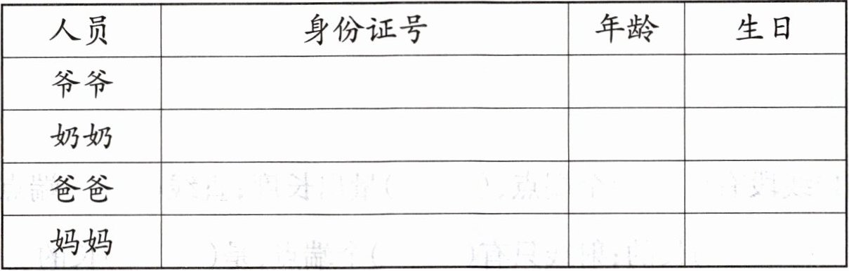 | 爷爷 | (根据实际填写) | (根据实际填写) | (根据实际填写) |