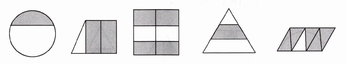 第一个图形(圆形,被分成4等份):涂其中2份。