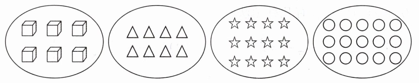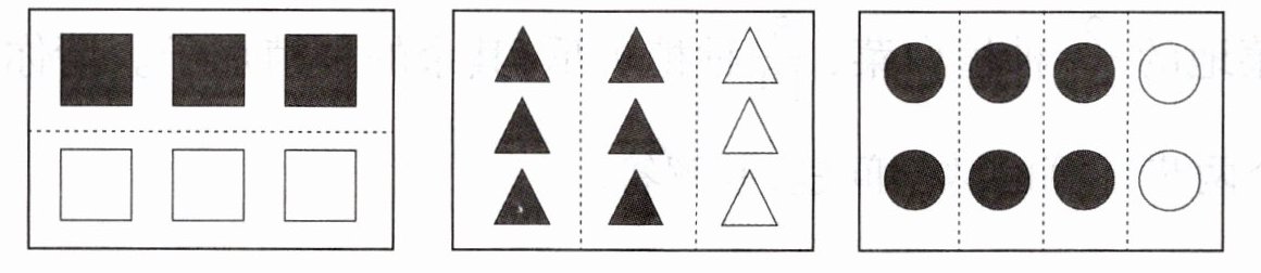 (由于题目要求根据分数涂色,需在给定图形中进行操作,此处无法直接展示涂色结果,实际作答时应在对应图形中按分数涂出相应数量的图形:第一个图形涂2个正方体,第二个图形涂6个三角形,第三个图形涂3个五角星,第四个图形涂3个圆形。)