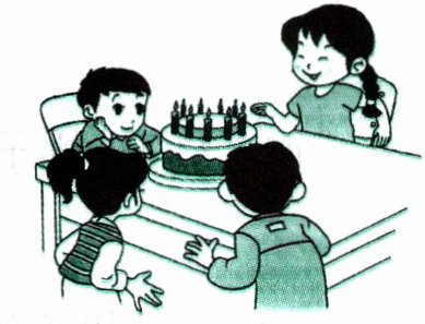 7.小玲过生日,邀请好朋友小明、小刚和小丽来家做客。妈妈买来一个蛋糕,小玲和小明吃了$\frac{2}{8}$,小刚和小丽吃了$\frac{3}{8}$。