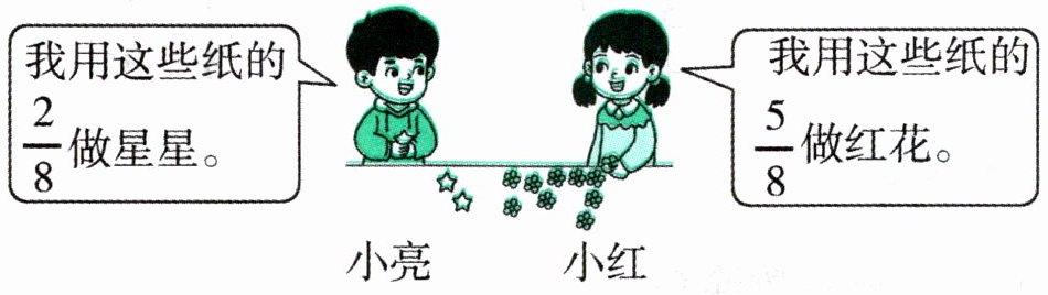2. 庆元旦,三(1)班的同学要做红花和星星来布置教室。小亮和小红领了16张大红纸。
