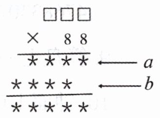 在本题中,第二次乘的时候,因数是$88$十位上的$8$,它表示$8$个十,即$80$,与三位数相乘所得的积$b$是$8$个十乘以三位数的结果;第一次乘的时候,因数是$88$个位上的$8$,它表示$8$个一,即$8$,与三位数相乘所得的积$a$是$8$个一乘以三位数的结果。