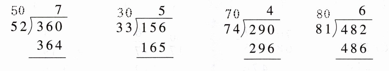 试商时,把$52$看作$50$来试商,初商$7$,此时$52×7 = 364$,$364\gt360$,说明商$7$大了,应调小,所以准确的商是$6$。
