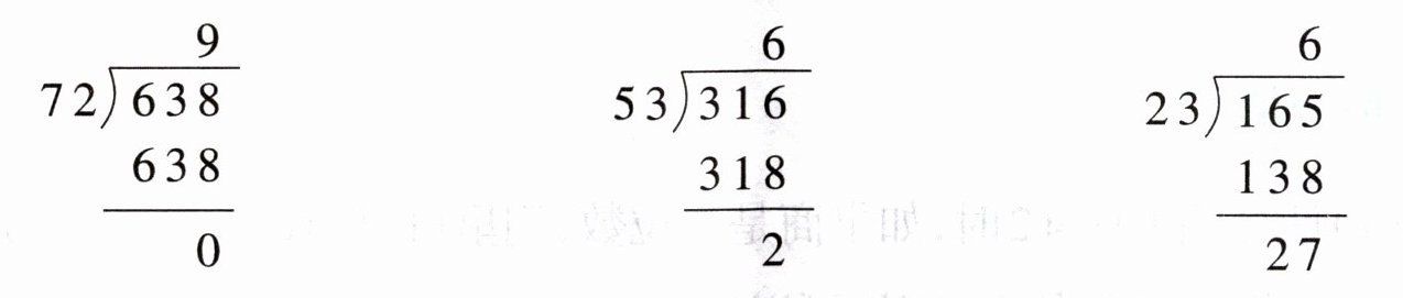 计算$638÷72$,商9余数为$638 - 72×9 = 638 - 648=- 10$(出错),