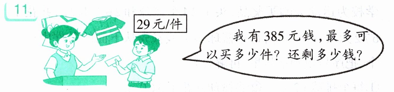 答案:$385÷29 = 13$(件)$\cdots\cdots8$(元)