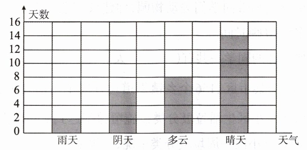 (1)由图可知,晴天有14天,多云有8天,阴天有6天,雨天有2天。
