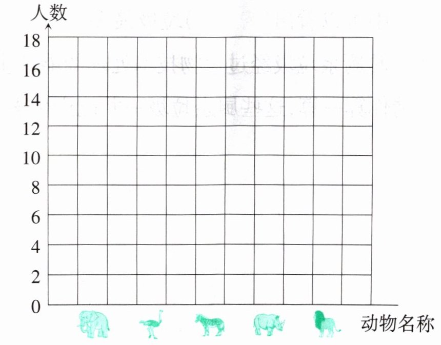 绘制条形图时,根据上述人数,在对应动物名称的条形上涂出相应数量的格子。