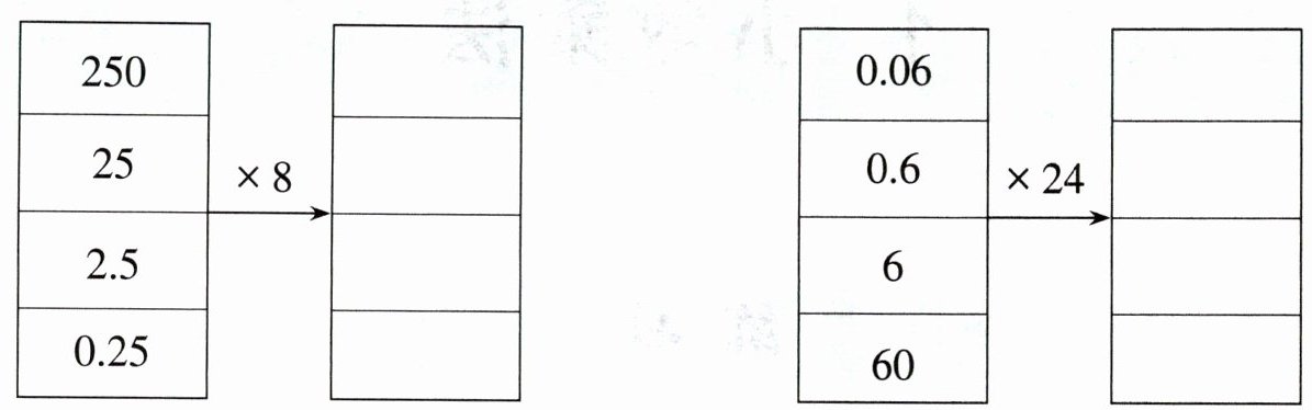 一个数($0$除外)乘小于$1$的数,积比原数小,因为$2.5$相较于$25$缩小了$10$倍,所以$2.5× 8$的积相较于$25× 8$的积也缩小$10$倍,即$2.5× 8 = 20$;
