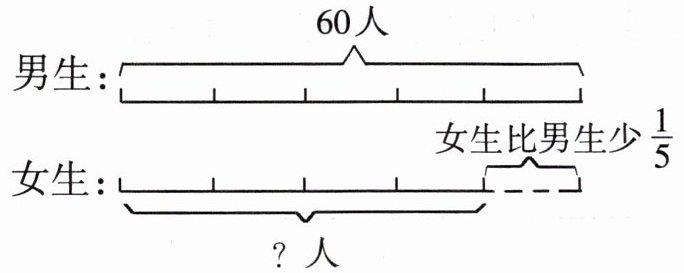 解析:考查分数减法的应用。已知男生有$60$人,女生比男生少$\frac{1}{5}$,求女生的人数。