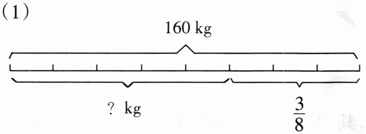 解析:考查分数的应用。已知总重量为$160kg$,求总重量的$(1 - \frac{3}{8})$是多少。