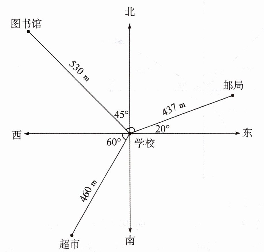 小狗家:图上距离:$100÷50=2(cm)$;画法:以中心为端点,向正东方向画一条长度为2cm的线段,端点处画五角星;