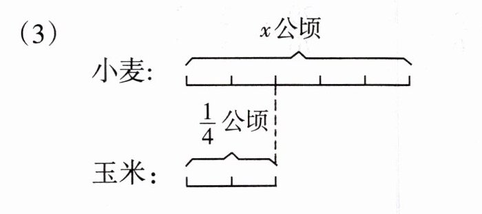 解:根据图意可知,玉米是$\frac{1}{4}$公顷,且玉米占小麦的$\frac{1}{5}$(从图中线段比例可得),可列方程$\frac{1}{5}x=\frac{1}{4}$。