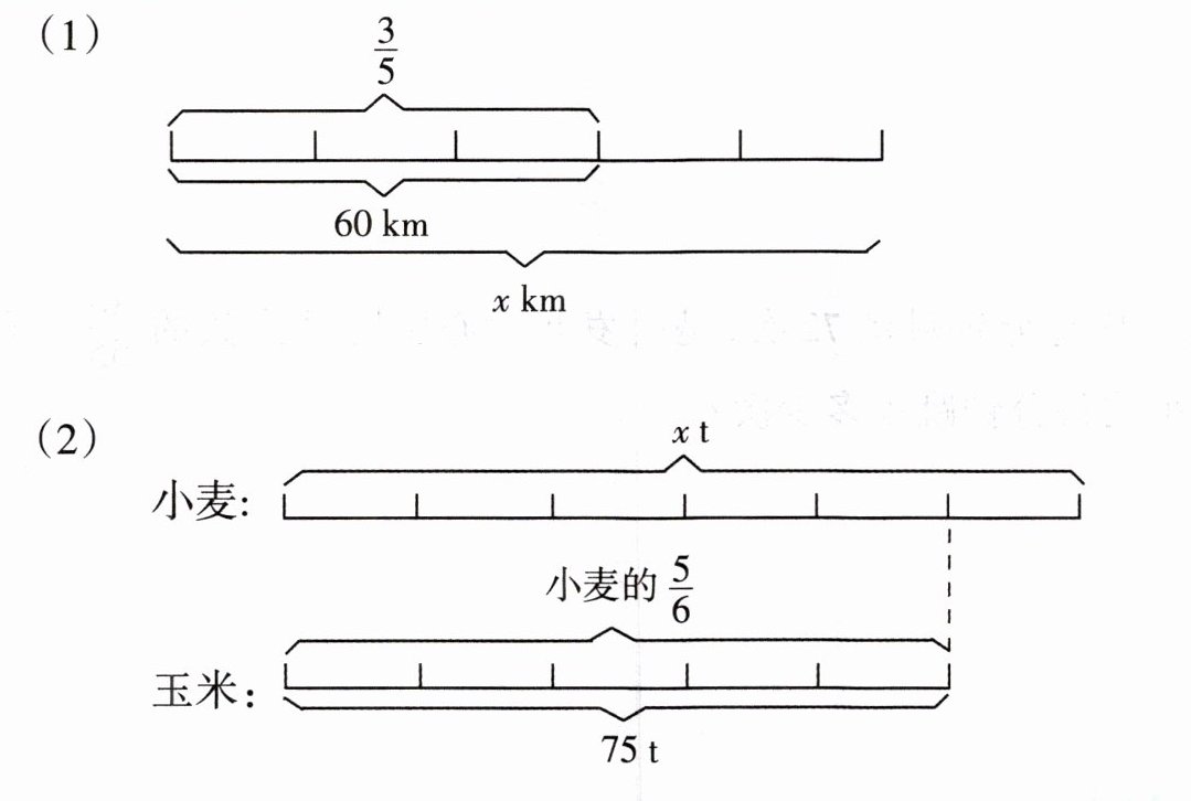 解:根据图意可知,$x$的$\frac{3}{5}$是$60$,可列方程$\frac{3}{5}x = 60$。