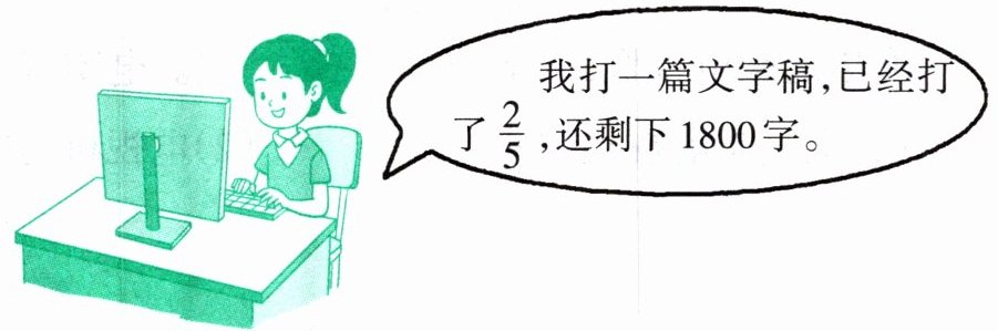 又已知还剩下$1800$字,根据“已知一个数的几分之几是多少,求这个数用除法”,用剩下的字数除以剩下的字数占总字数的分率,即可求出这篇文字稿的总字数。