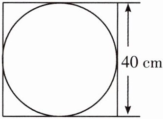 圆的直径等于正方形的边长,为40cm,半径为20cm。