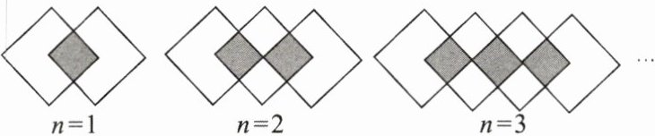 4. 用同样大小的正方形按下列规律摆放,将重叠部分涂上颜色,下面的图案中,第 $n$ 个图案中正方形的个数是