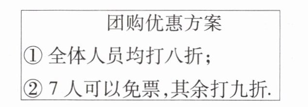 1. 某校七年级三个班级联合开展户外研学活动,此次活动由一班班长负责购买车票,票价每张20元.有两种优惠方案: