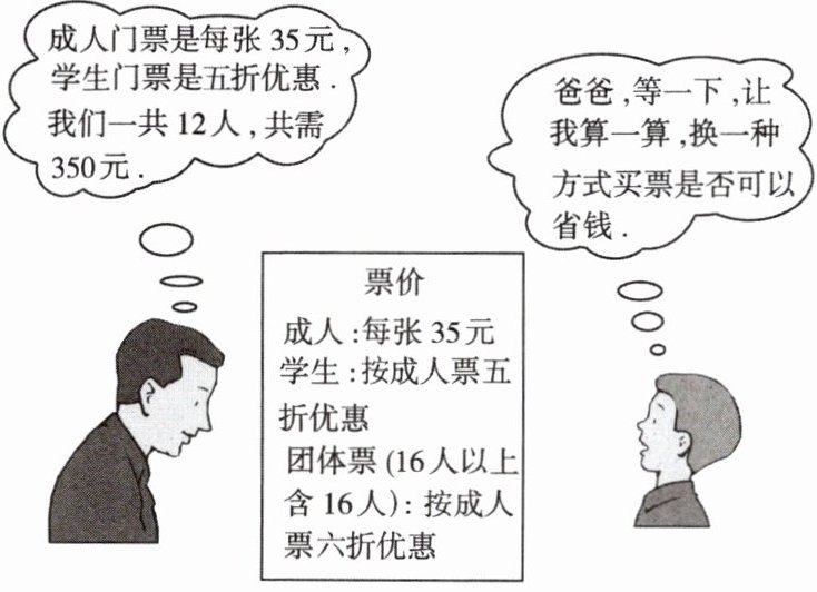 (2)35×12×0.6=252<350,所以购买团体票更省钱.