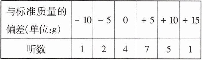 6. 某市质量监督局从某食品厂生产的罐头中,随机抽取20听进行检查. 超过标准质量的部分用正数表示,不足标准质量的部分用负数表示,抽查结果如下表:
