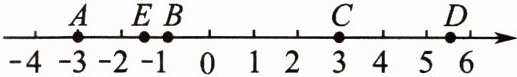 点A,B,C,D,E分别表示-3,-1,3,5.5,-1.5.