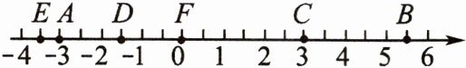 解:点A:-3,点B:5.5,点C:3,点D:-1.5,点E:-3.5,点F:0