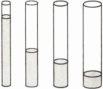 如图,四个圆柱形容器内部的底面积分别为$10\mathrm{cm}^2$,$20\mathrm{cm}^2$,$30\mathrm{cm}^2$,$60\mathrm{cm}^2$.分别往这四个容器中注入$300\mathrm{cm}^3$的水.