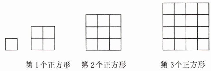如图,用大小相等的小正方形拼成大正方形,拼第 $ 1 $ 个正方形需要 $ 4 $ 个小正方形,拼第 $ 2 $ 个正方形需要 $ 9 $ 个小正方形……拼一拼,想一想,按照这样的方法拼成的第 $ n $ 个正方形比第 $ (n - 1) $ 个正方形多几个正方形?