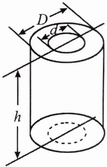 11. 如图,水压机有四根空心钢立柱,每根高都是18m,外径$D$为1m,内径$d$为0.4m. 每立方米钢的质量为7.8t,求4根立柱的总质量($\pi$取3.14).