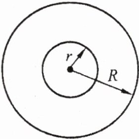2. 如图,大小两圆的圆心相同,已知它们的半径分别是 $R$ cm 和 $r$ cm,求它们所围成的环形的面积. 如果 $R = 8.45$,$r = 3.45$ 呢?$(\pi = 3.14)$