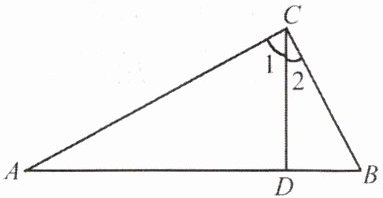 例 4 如图,在 △ABC 中,D 是 AB 上一点,∠1 = ∠B,∠A = ∠2. 求证:△ABC 是直角三角形.