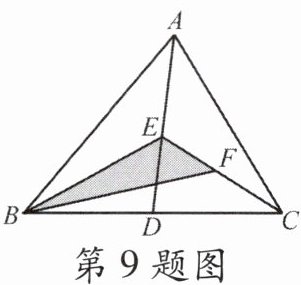 9. 如图,在△ABC 中,已知点 D,E,F 分别为 BC,AD,CE 的中点,设△ABC 的面积为 8,则图中阴影部分的面积是(