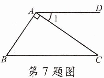 7. 如图,AD//BC,AB⊥AC,若∠1 = 35.8°,则∠B 的度数是(